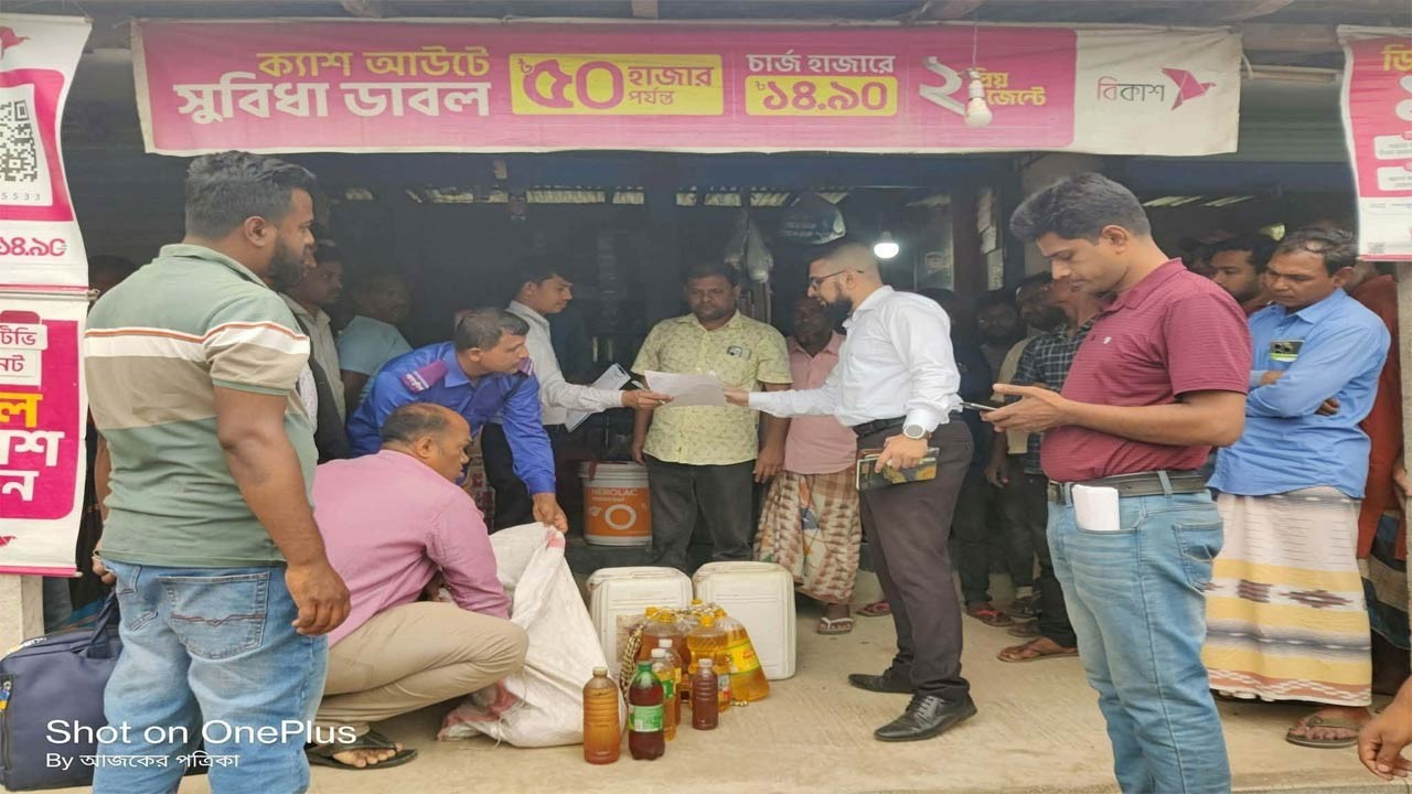খানসামা (দিনাজপুর) প্রতিনিধি : দিনাজপুরের খানসামা উপজেলার গোয়ালডিহি ইউনিয়নের ভুল্লার ডাঙ্গা বাজারে অভিযান চালিয়ে মুদি ব্যবসায়ী জুয়েলের দোকান থেকে বোতলে রাখা ১০০ দশমিক ৫ লিটার জ্বালানি তেল জব্দ করেছে ভ্রাম্যমাণ আদালত। আজ মঙ্গলবার (৩১ মার্চ) সকালে এ অভিযান পরিচালনা করেন উপজেলা সহকারী কমিশনার (ভূমি) ও নির্বাহী ম্যাজিস্ট্রেট অয়ন ফারহান শামস।
