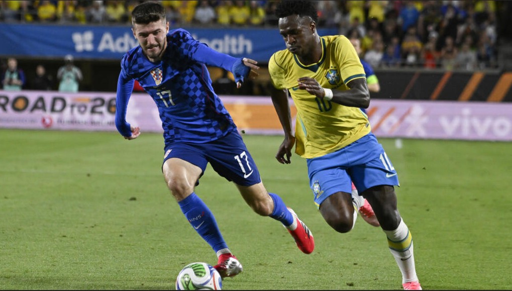 মঙ্গলবার ফ্লোরিডার ক্যাম্পিং ওয়ার্ল্ড স্টেডিয়ামে কার্লো আনচেলত্তির শিষ্যরা প্রথমার্ধে একক আধিপত্য ধরে খেলতে থাকে। ক্রোয়েশিয়ার ওপর চাপ প্রয়োগ করে প্রথম গোলটি আদায় করে নেয় প্রথমার্ধের যোগ করা সময়ে। ভিনিসিয়ুস জুনিয়রের প্রতি-আক্রমণ থেকে বল পান দানিলো সান্তোস। সুযোগ পেয়ে সেটি কাজে লাগাতে মোটেও ভুল করেননি তিনি। এগিয়ে নিয়ে যান দলকে। ওই এক গোলের লিডে বিরতিতে যায় ব্রাজিল।