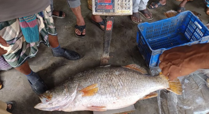কুয়াকাটায় ২৩ কেজি ওজনের কোরাল মাছ বিক্রি ৩০ হাজার ৬৪৫ টাকায়