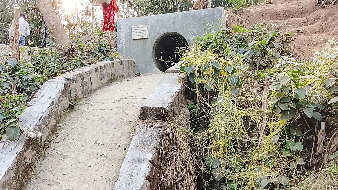 গ্রামবাসীর চাঁদায় নির্মিত কালভার্টে চেয়ারম্যানের প্রকল্পের অভিযোগ
