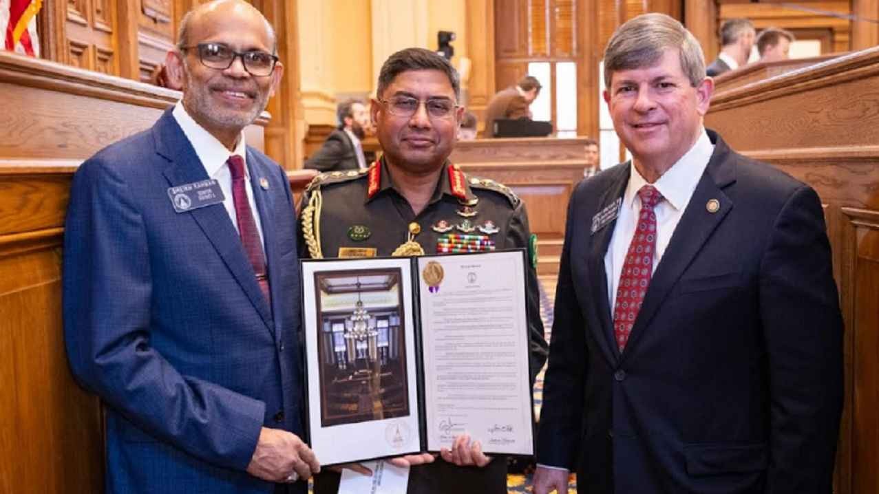 যুক্তরাষ্ট্রের জর্জিয়া অঙ্গরাজ্যের গভর্নর ব্রায়ান পি. কেম্প সিনেটের এক আনুষ্ঠানিক অধিবেশনে সেনাবাহিনী প্রধানের হাতে এ সম্মাননা তুলে দেন।