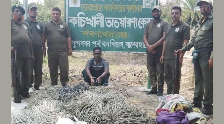 সুন্দরবনে ফাঁদসহ হরিণ শিকারি আটক