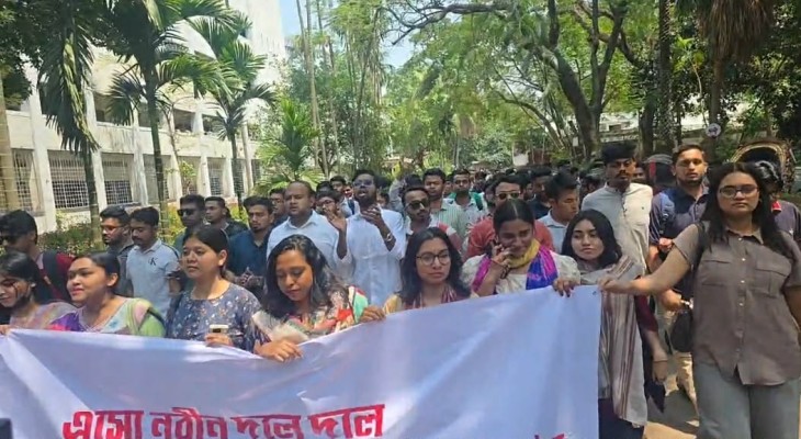 নবীন শিক্ষার্থীদের স্বাগত জানিয়ে ঢাবি ছাত্রদলের মিছিল