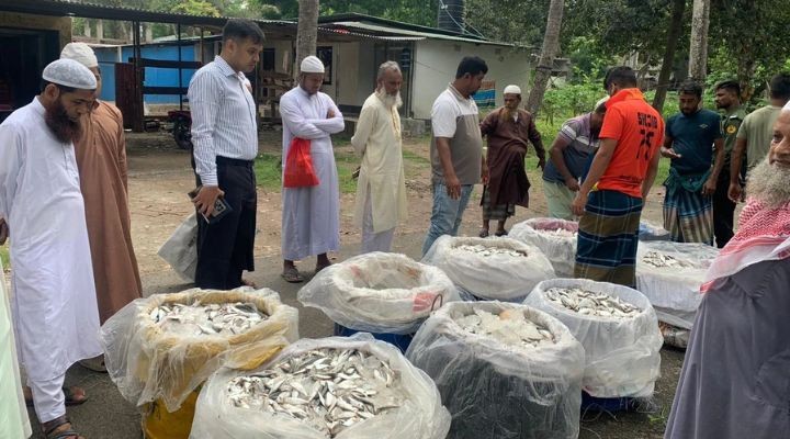 জব্দ করা ২৭ মণ জাটকা ইলিশ বিতরণ করা হলো ১৪ এতিমখানায়