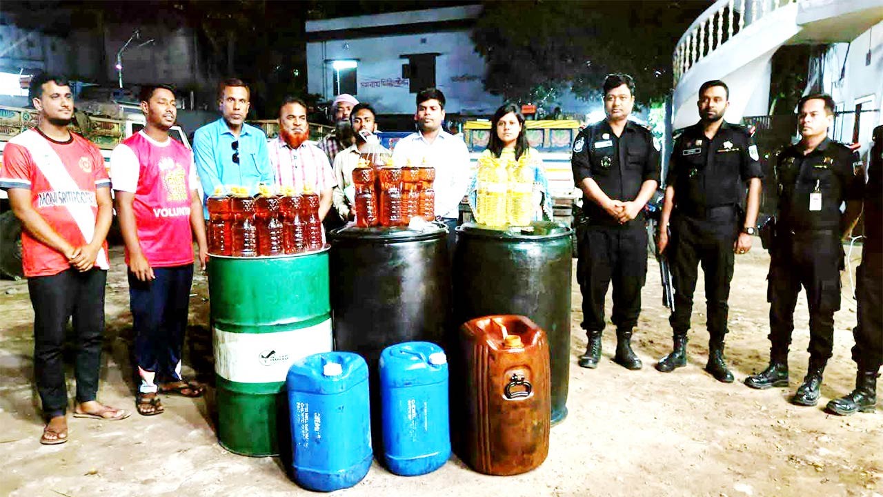 গোপন সংবাদের ভিত্তিতে র্যাব-১২ এর সিও মো. আতিকুর রহমান বিপিএম এর নির্দেশনায় সদর কোম্পানি কমান্ডার ক্যাপ্টেন তাবরিজ তাজওয়ার শরীফ এর নেতৃত্বে গতকাল বৃহস্পতিবার সন্ধ্যায় উপজেলার সলঙ্গা থানার সাহেবগঞ্জ বাজার এলাকায় অভিযান চালানো হয়। এসময় ৭০৯ লিটার ডিজেল, ৫ লিটার মবিল, ৮ লিটার পুষ্টি সয়াবিন তেল ও ৪২ লিটার রাইস ব্রাইনসহ তেল আটক করা হয়।