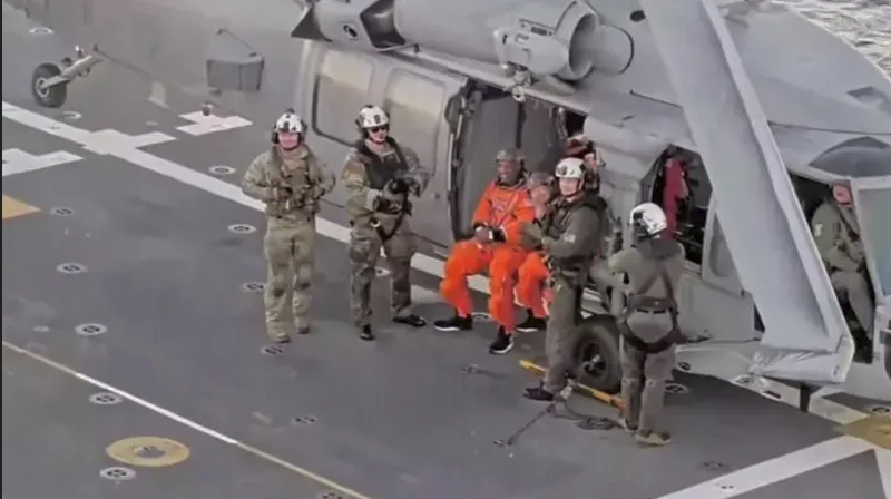 এরপর তাদের হেলিকপ্টারে করে জন পি মুর্থা যুদ্ধজাহাজে নেওয়া হয়। প্রথম হেলিকপ্টারে ক্রিস্টিনা কোচ ও ভিক্টর গ্লোভারকে নিয়ে সেখানে নিয়ে আসা হয়। এই জাহাজটিতে হেলপ্যাড ছাড়া চিকিৎসা সুবিধা সক্ষমতা আছে।চার নভোচারীকে সেখানে আনার পর তাদের পালস, ব্লাড প্রেশার, মস্তিষ্ক ও নার্ভ সিস্টেম ও ভারসাম্য পরীক্ষা করা হয়।