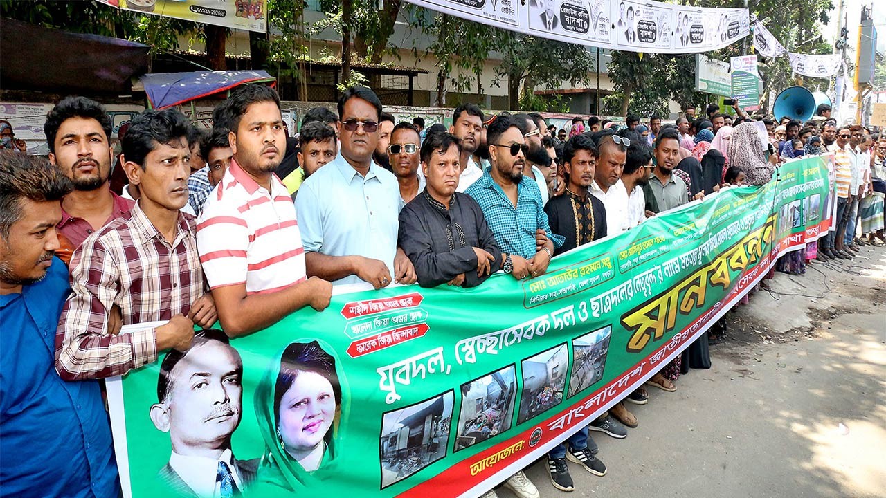 বগুড়া শহর স্বেচ্ছাসেবক দলের সাধারণ সম্পাদক হোসেন আলীর সভাপতিত্বে মানববন্ধনে বক্তব্য রাখেন-শহর যুবদলের সাধারণ সম্পাদক আদিল শাহরিয়র গোর্কি, শহর স্বেচ্ছাসেবক দলের সহসভাপতি রুহুল আমিন রুবেল, যুগ্ম সম্পাদক মোমিন তালুকদার, সাংগঠনিক সম্পাদক সম্রাট হোসেন, সহসাংগঠনিক সম্পাদক রুহুল আমিন, সাবেক যুগ্ম আহ্বায়ক আমিন পশারী, শহর যুবদলের যুগ্ম সাধারণ সম্পাদক সাদ্দাম হোসেন, স্বেচ্ছাসেবক দল নেতা পলাশ, মোতালেব শেখসহ অন্যরা।