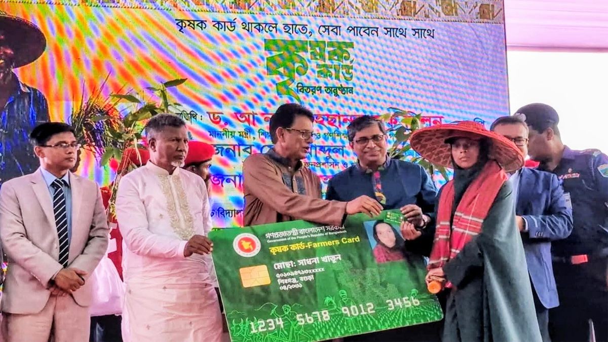 আরও পড়ুনশিক্ষামন্ত্রী আরও বলেন,“কৃষকদের এই কার্ড দিয়ে প্রধানমন্ত্রী নতুন হালখাতা খুললেন। কৃষকদের উন্নয়নে সরকার ধারাবাহিকভাবে কাজ করছে। কৃষক কার্ডের মাধ্যমে প্রণোদনা, ভর্তুকি ও প্রয়োজনীয় সহায়তা সহজেই তাদের কাছে পৌঁছে যাবে, যা কৃষি উৎপাদন বৃদ্ধিতে গুরুত্বপূর্ণ ভূমিকা রাখবে।