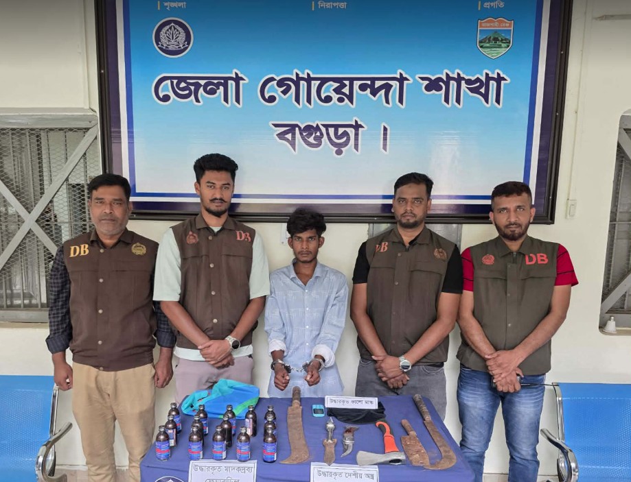 স্টাফ রিপোর্টার : জেলা গোয়েন্দা শাখা (ডিবি) বগুড়ার বিশেষ অভিযানে মাদক ও কয়েকটি দেশিয়  ধারালো অস্ত্র উদ্ধারসহ এক যুবককে গ্রেফতার করা হয়েছে।