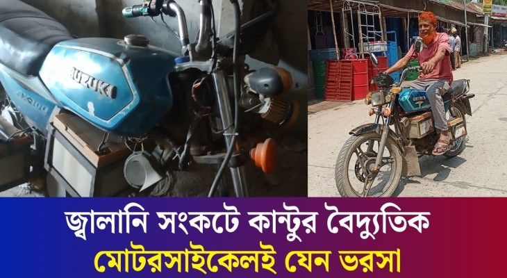 বগুড়ায় মোটরসাইকেলে ব্যাটারি লাগিয়ে চলাচল করছেন কান্টু