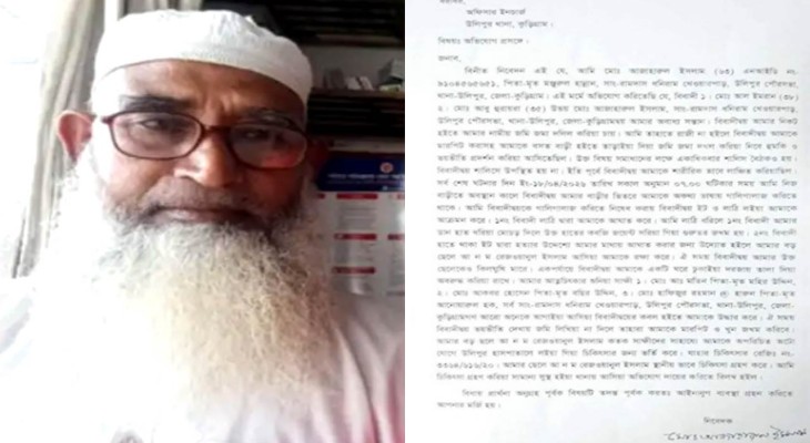 ভুক্তভোগী মো. আজাহারুল ইসলাম(৬৩) তার অভিযোগে জানান, তার দুই ছেলে মো. আল ইমরান(৩৮) ও মো. আবু হুরায়রা(৩৫) দীর্ঘদিন ধরে তার নামে থাকা জমি নিজেদের নামে লিখে নেওয়ার জন্য চাপ দিয়ে আসছিলেন। এতে রাজি না হওয়ায় তারা তাকে বিভিন্ন সময় ভয়ভীতি প্রদর্শন ও শারীরিকভাবে লাঞ্ছিত করেন তারা। বিষয়টি মীমাংসার জন্য একাধিকবার স্থানীয়ভাবে সালিশ-বৈঠক হলেও অভিযুক্তরা তাতে উপস্থিত হননি।