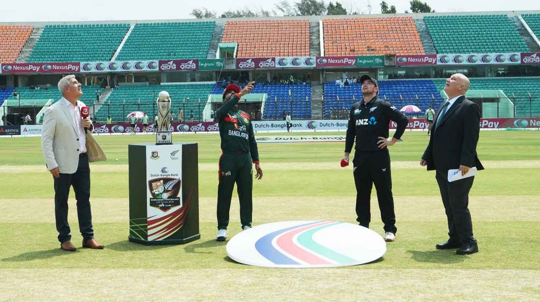 স্পোর্টস ডেস্ক: নিউজিল্যান্ডের বিপক্ষে তিন ম্যাচ সিরিজের তৃতীয় ওয়ানডেতেও টস হেরেছেন বাংলাদেশ অধিনায়ক মেহেদি হাসান মিরাজ। এ নিয়ে টানা তিন ম্যাচেই টস হারলেন। চট্টগ্রামের বীরশ্রেষ্ঠ শহীদ ফ্লাইট লেফট্যানেন্ট মতিউর রহমান স্টেডিয়ামে টস জিতে বোলিংয়ের সিদ্ধান্ত নেন নিউজিল্যান্ড অধিনায়ক টম লাথাম।