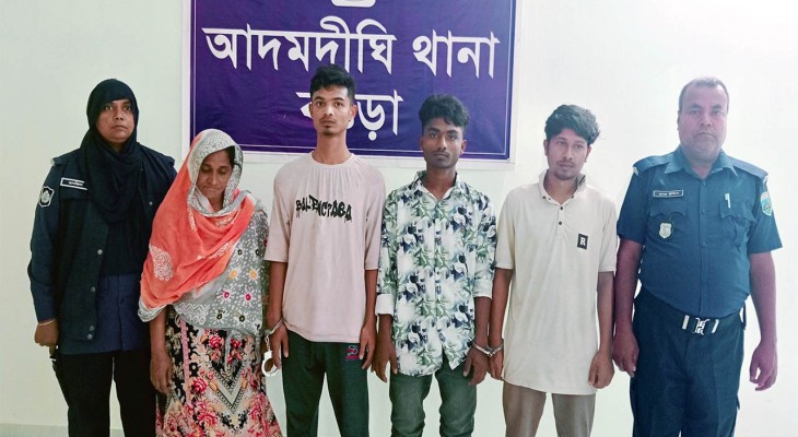 বগুড়ার আদমদীঘিতে গৃহবধূকে আটকে রেখে পালাক্রমে ধর্ষণ, নারীসহ গ্রেফতার ৪