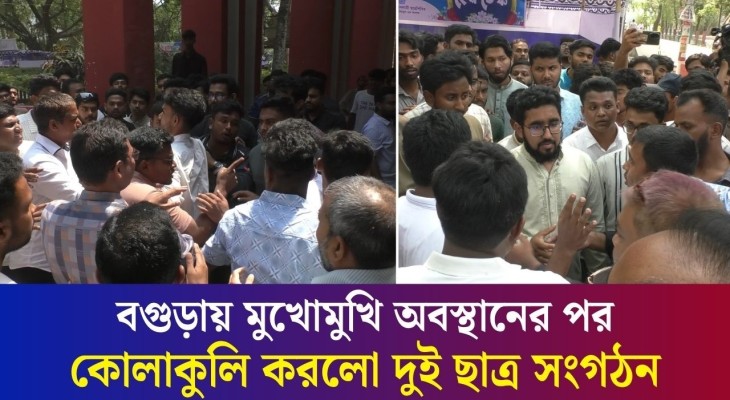 হঠাৎ বগুড়া সরকারি আজিজুল হক কলেজে ছাত্রদল-শিবির মুখোমুখি পরে কোলাকুলি