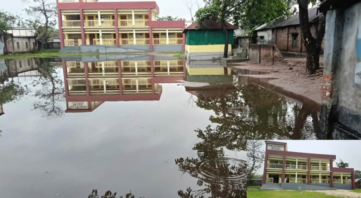 গত ২৫ এপ্রিল স্থানীয় সরকার প্রকৌশল অধিদপ্তরের তত্ত্বাবধায়নে ৮২ লাখ ২৯ হাজার ৭০২ টাকা ব্যয়ে নির্মিত বিদ্যালয়ের নতুন ভবনটির আনুষ্ঠানিক উদ্বোধন করেছেন নীলফামারী-৪ (সৈয়দপুর-কিশোরগঞ্জ) আসনের সংসদ সদস্য মো. আব্দুল মুনতাকিম। কিন্তু নতুন ভবনটির উদ্বোধনের পরেই গত শনিবার রাত থেকে আজ রোববারের বৃষ্টির পানিতে বিদ্যালয়ের পুরো মাঠে মারাত্মক জলাবদ্ধতার সৃষ্টি হয়েছে।