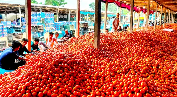 জমে উঠছে দিনাজপুরের গাবুড়া’র টমেটোর বাজার