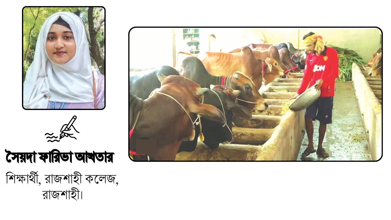 বছর ঘুরে আবার এলো মুসলমানদের অন্যতম বড় ধর্মীয় উৎসব ঈদুল আযহা। কুরবানির ঈদ মানেই আনন্দ, ত্যাগ আর আত্মশুদ্ধির এক অনন্য উৎসব। হযরত ইব্রাহিম (আঃ) আল্লাহ তায়ালার প্রতি আনুগত্য এবং তাঁর প্রিয় পুত্রকে কুরবানি দেওয়ার প্রস্তুতির ঘটনা থেকেই এই ঈদের সূচনা হয়। আর এ উৎসবেরই একটি বিশেষ দিক হলো কুরবানির পশু। কুরবানির ঈদ এলেই দেশের পথে প্রান্তরে যেন এক উৎসবমুখর পরিবেশ সৃষ্টি হয়। শহর, বন্দর আর গ্রামে গ্রামে শুরু হয় কুরবানির পশু কেনাবেচার ধুম। রাস্তার মোড়ে মোড়ে গড়ে ওঠে অস্থায়ী পশুর হাট, মানুষের মাঝে থাকে আনন্দ আর থাকে ব্যস্ততা। কে কোন গরু কিনছে, কার গরু বড়, কারটা সুন্দর, এসব নিয়েই চলে নানান আলোচনা। কিন্তু এর আড়ালে যে অসংখ্য খামারির শ্রম, স্নেহ, ত্যাগ আর আশা জড়িয়ে আছে তা কি আমরা কখনো ভেবে দেখি ?