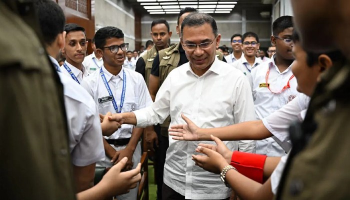 জাতীয় সংসদ ভবন পরিদর্শনে আসা রাজধানীর ঢাকা রেসিডেন্সিয়াল মডেল কলেজের শিক্ষার্থীদের সঙ্গে শুভেচ্ছা বিনিময় করেছেন প্রধানমন্ত্রী ও সংসদ নেতা তারেক রহমান।