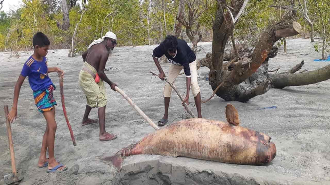 রোববার (২৮ সেপ্টেম্বর) সকাল ৯টার দিকে গঙ্গামতি এলাকার রেইন্ট্রি বাগান সংলগ্ন সৈকতে প্রায় ৭ ফুট দীর্ঘ পুরুষ ডলফিনটি দেখতে পান ট্যুর গাইড অ্যাসোসিয়েশনের সদস্য জামাল। খবর পেয়ে বন বিভাগ ও উপকূল পরিবেশ রক্ষা আন্দোলনের (উপরার) সদস্যরা ঘটনাস্থলে গিয়ে ডলফিনটিকে মাটিচাপা দেয়।