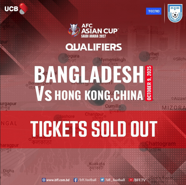 স্পোর্টস ডেস্ক: দুপুর দুইটায় বাংলাদেশ-হংকং এশিয়ান কাপ বাছাইয়ের ম্যাচের টিকিট বিক্রি শুরু হয়। ৩০ মিনিটের মধ্যেই ৯ অক্টোবর ঢাকায় অনুষ্ঠিতব্য ম্যাচের সাধারণ গ্যালারি টিকিট বিক্রি হয়েছে। আজ বিকেলে বাফুফের কম্পিটিশন কমিটি এই তথ্য নিশ্চিত করেছে।বাফুফের কম্পিটিশন কমিটির সদস্য তাজওয়ার আউয়াল বলেন, ‘আমরা সাধারণ গ্যালারি ও ক্লাব হাউজ যে টিকিট গুলো ছেড়েছিলাম সেগুলো সবই বিক্রি হয়েছে। সব মিলিয়ে ২৪ মিনিট লেগেছে আর হয়তো পেমেন্ট ফেলিউর বা অন্য কিছুর জন্য হয়তো আরো ৫-৬ মিনিট লেগেছে। সব মিলিয়ে আধঘন্টার মধ্যে টিকিট বিক্রি হয়েছে।’