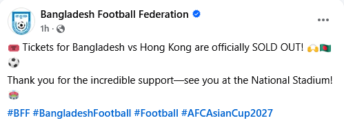 ৩০ মিনিটেই হামজাদের ম্যাচের টিকিট ‘সোল্ড আউট’
