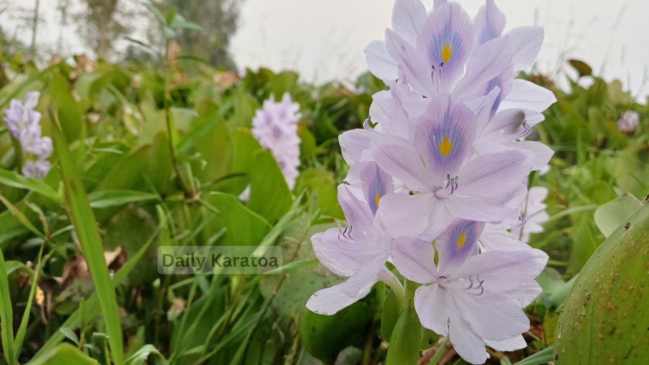 বগুড়ার বিভিন্ন জলাশয়ে ফুটছে কচুরিপানার ফুল