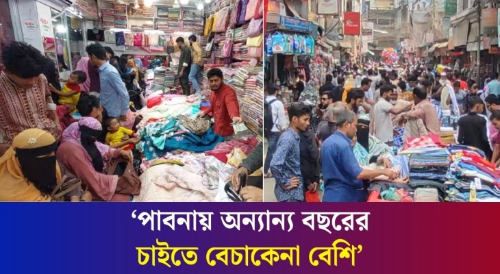 পাবনায় জমজমাট ঈদ কেনাবেচা, পছন্দের শীর্ষে ভারতীয়-পাকিস্তানি থ্রি-পিস