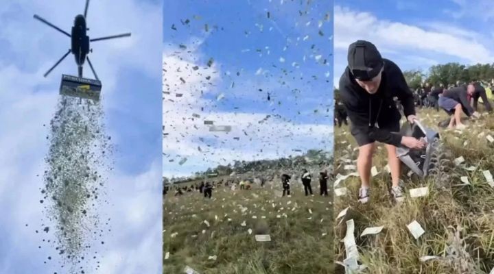 হেলিকপ্টার থেকে বৃষ্টির মতো পড়ছে টাকা!