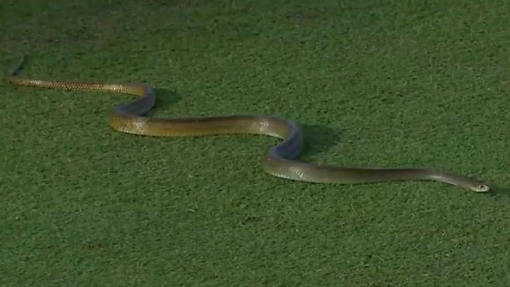 টিভি পর্দায় মাঠে দৌঁড়ানো সাপটিকে বারবার দেখানো হয়। তাতে অবশ্য খেলা থমকে যায়নি। যেমন চলার কথা ছিল, তেমনই চলছিল।