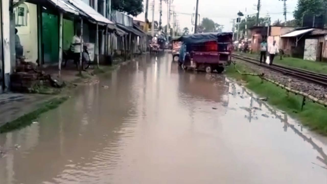 বগুড়ার দুপচাঁচিয়ার তালোড়া রেল সড়কটির বেহাল দশা সামান্য বৃষ্টিতেই জলাবদ্ধতা