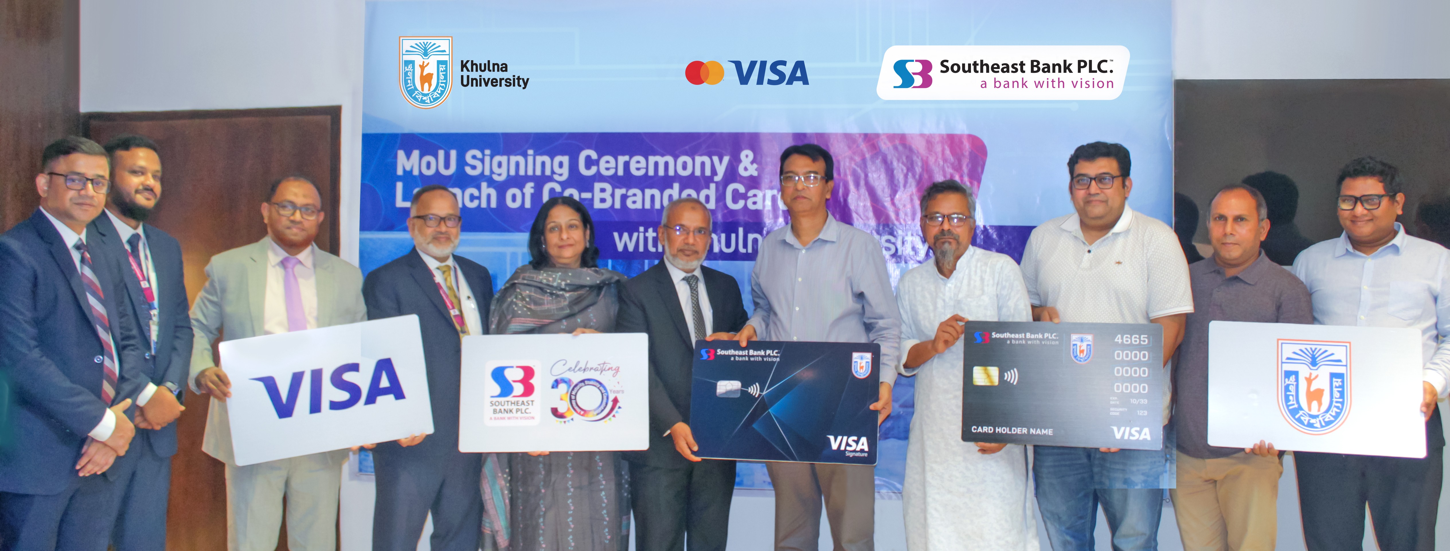 সাউথইস্ট ব্যাংক পিএলসি ও খুলনা বিশ্ববিদ্যালয়ের মধ্যে কো-ব্র্যান্ডেড ক্রেডিট ও প্রিপেইড কার্ড উদ্বোধন