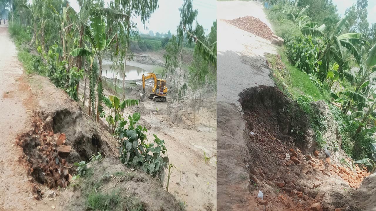 দিনাজপুরের পার্বতীপুরে অবৈধভাবে বালু উত্তোলন ভেঙে গেছে প্রধান সড়ক