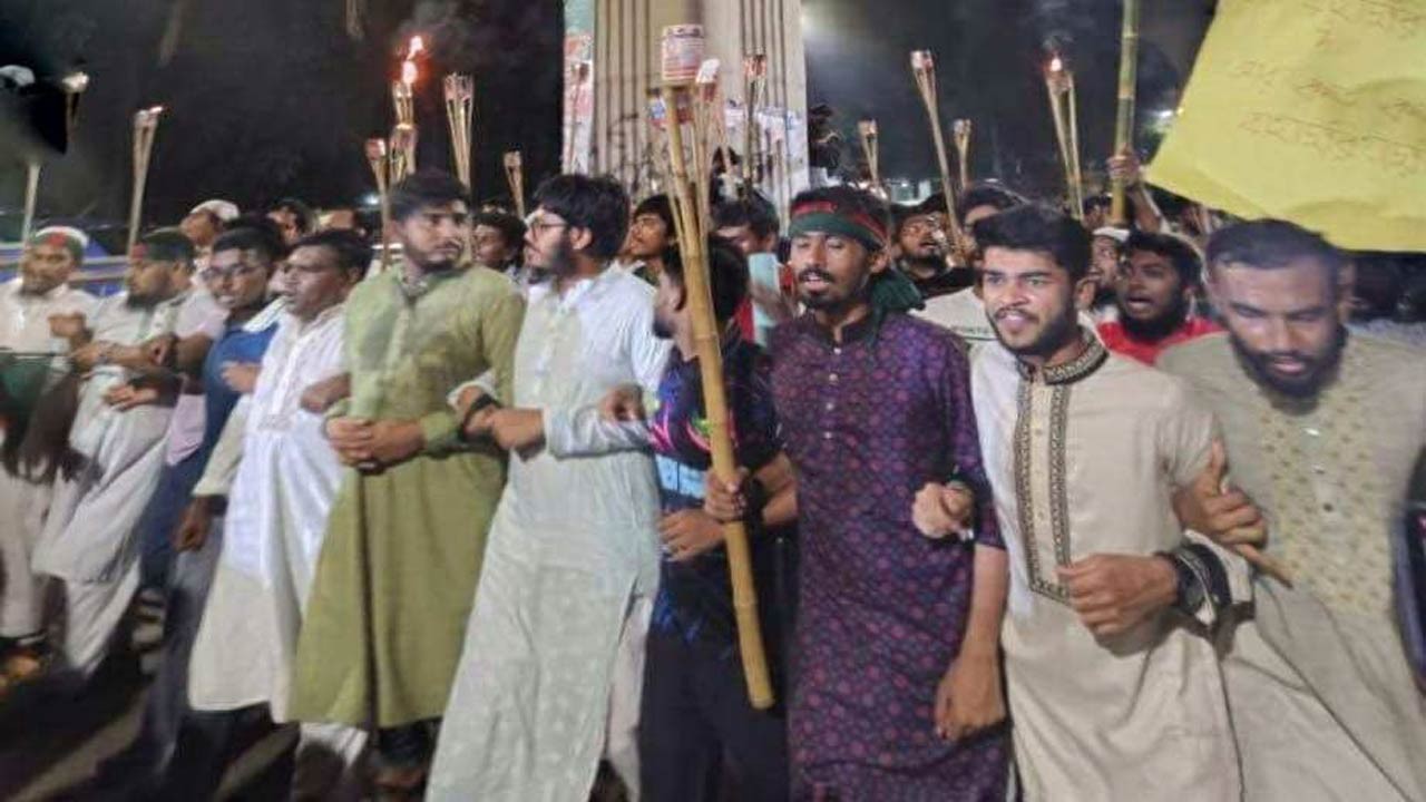 মিটফোর্ডে ব্যবসায়ী হত্যার প্রতিবাদে বৈষম্যবিরোধী ছাত্র আন্দোলনের মশাল মিছিল