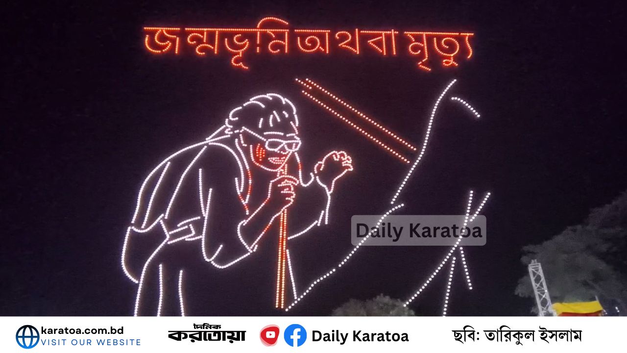 ঢাকা বিশ্ববিদ্যালয় সংলগ্ন কেন্দ্রীয় শহীদ মিনারে আয়োজন করা হয় এ ব্যতিক্রমধর্মী আয়োজনের। শতাধিক ড্রোন আবারও ফুটিয়ে তুললো চব্বিশের জুলাইয়ের সাহসী, বিপ্লবী অবদান। ঢাকা বিশ্ববিদ্যালয়ের শিক্ষার্থীরা বিমোহিত দৃষ্টিতে তা দেখেন।