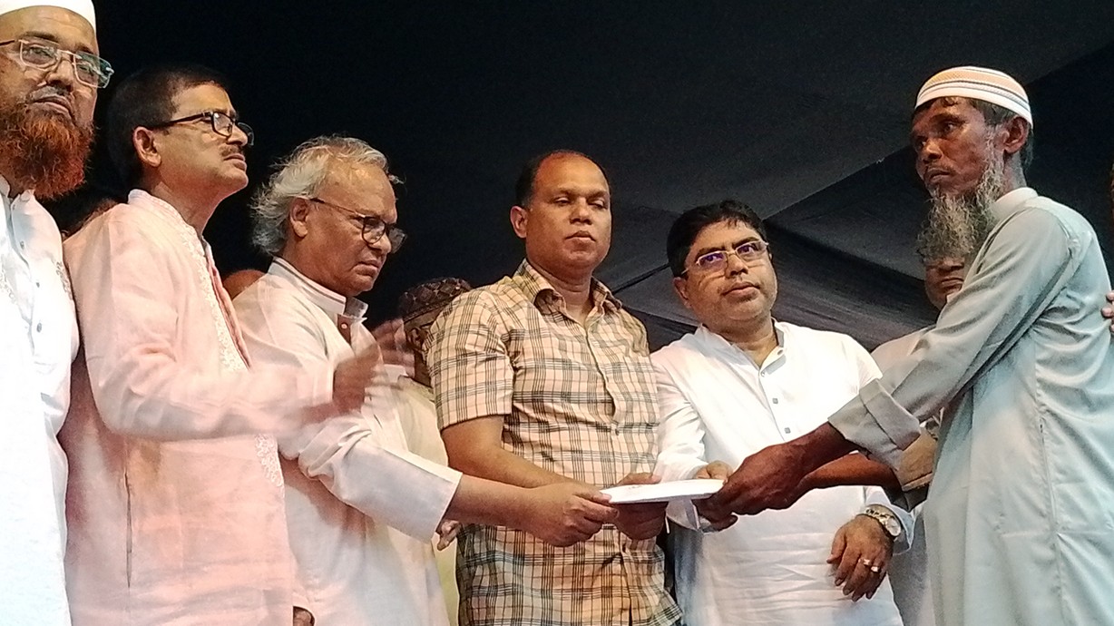 আলোচনা সভা শেষে কুড়িগ্রাম জেলার ১০ শহীদ পরিবারের মাঝে আর্থিক সহায়তা প্রদান করেন রুহুল কবির রিজভী।