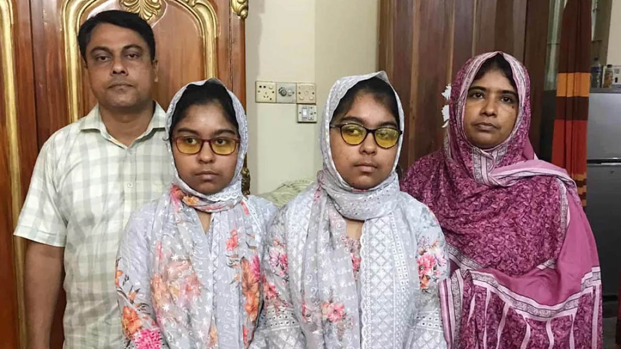 সিরাজগঞ্জের শাহজাদপুরে দৃষ্টি প্রতিবন্ধী যমজ বোন এসএসসিতে জিপিএ-৫ পেয়েছে