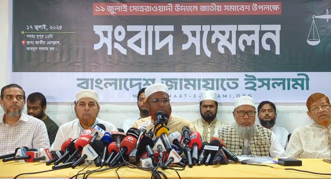 আরও পড়ুনএছাড়া সংবাদ সম্মেলনে সমাবেশের উদ্দেশ্য, প্রস্তুতি ইত্যাদি বিষয় নিয়ে কথা বলেন দলের সেক্রেটারি জেনারেল মিয়া গোলাম পরওয়ার। নির্বাচনের লেভেল প্লেয়েইং ফিল্ড নিশ্চিত করা, গণহত্যার দৃশ্যমান বিচার, মৌলিক সংস্কার নিশ্চিত করে নির্বাচনের ব্যবস্থাসহ বিভিন্ন দাবি সমাবেশ থেকে উত্থাপনের কথা জানান তিনি।