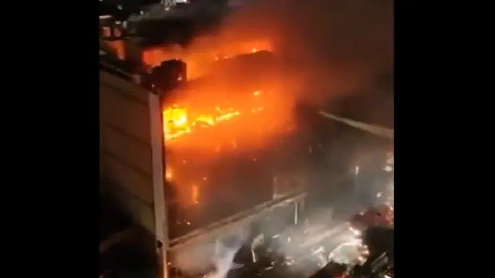 রয়টার্সের যাচাই করা ভিডিওতে দেখা যায়, দমকলকর্মীরা রাতভর আগুন নিয়ন্ত্রণের জন্য পানি ছুড়ছেন। একই সময়ে উদ্ধারকর্মীদের সহায়তায় মার্কেটে ছাদে আটকা পড়া লোকজনকে নিরাপদে নামিয়ে আসতে দেখা যায়।