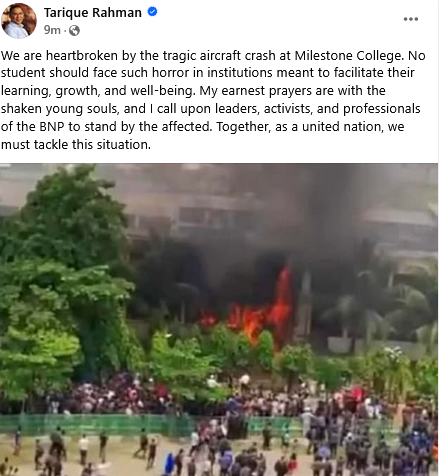 বিমান বিধ্বস্তের ঘটনায় জরুরি সহায়তার নির্দেশ তারেক রহমানের