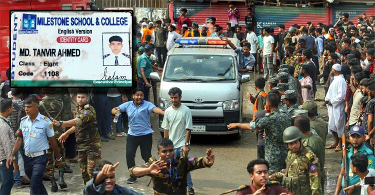আরও পড়ুনবিমানটি মাইলস্টোন স্কুলের হায়দার হল নামের একটি ভবনের ক্যানটিনের ছাদে গিয়ে আছড়ে পড়ে।
