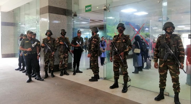 মঙ্গলবার (২২ জুলাই) সকালে জাতীয় বার্ন ও প্লাস্টিক সার্জারি ইনস্টিটিউটে এ চিত্র দেখা যায়। জাতীয় বার্ন ও প্লাস্টিক সার্জারি ইনস্টিটিউটের প্রবেশ গেটে সেনা সদস্য, আনসার ও রোভার স্কাউটের সদস্যরা দাঁড়িয়ে আছেন। তারা হাসপাতালটির কর্তৃপক্ষ ও রোগীর স্বজনদের পরিচয় নিশ্চিত হওয়ার পর ভেতরে ঢুকতে দিচ্ছেন। এর বাইরে গণমাধ্যম বা জনতাকে তারা ঢুকতে দিচ্ছেন না।