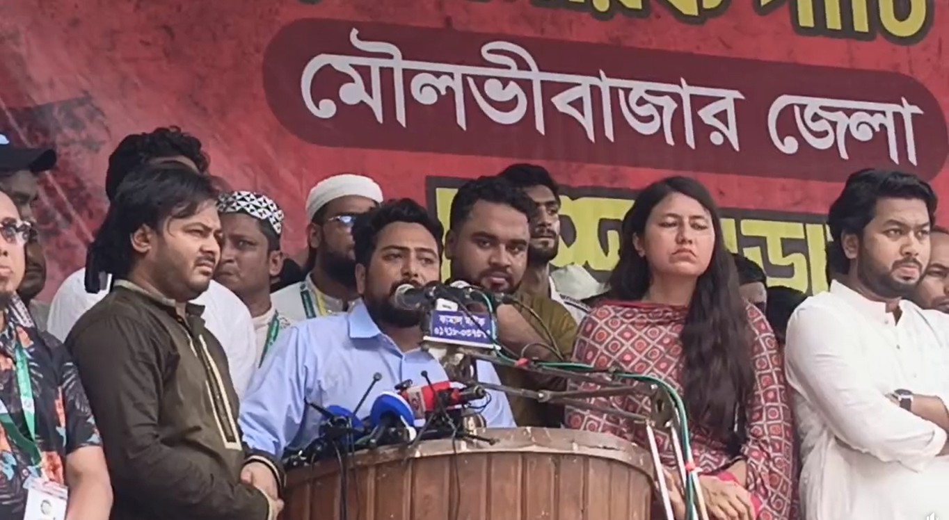 আজ শনিবার (২৬ জুলাই) দুপুরে মৌলভীবাজার শহরের বেরীরপাড় এলাকায় অনুষ্ঠিত দলটির পথসভায় নাহিদ এ কথা বলেন। এসময় হবিগঞ্জের বানিয়াচংয়ে পুলিশ হত্যার দায় অভ্যুত্থানকারীদের দেওয়ার চেষ্টা চলছে বলেও অভিযোগ করেন তিনি। এনসিপি আহ্বায়ক আরও বলেন, চা শ্রমিকদের জীবনমান উন্নয়নে কাজ করবে এনসিপি। পাশাপাশি বিভিন্ন জাতিসত্তার অধিকার নিশ্চিত করা হবে।