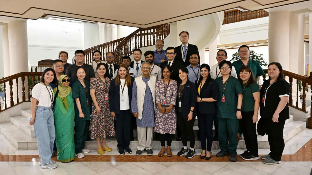 রোববার (২৭ জুলাই) রাষ্ট্রীয় অতিথি ভবন যমুনায় সিঙ্গাপুর, চীন ও ভারতের ২১ জন চিকিৎসক এবং নার্সের একটি প্রতিনিধি দল প্রধান উপদেষ্টার সঙ্গে সাক্ষাৎ করেছেন। সাক্ষাৎকালে চিকিৎসা সহায়তা দেওয়ার জন্য আন্তরিক কৃতজ্ঞতা প্রকাশ করেন তিনি।