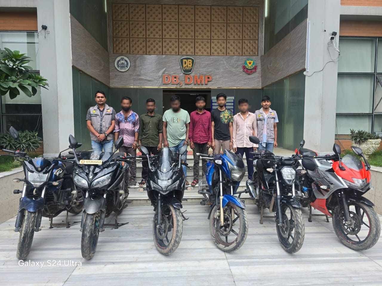 গ্রেফতারকৃতরা হলো: ১। মোঃ জসিম বেপারী (৪০) ২। মোঃ মোশারফ হোসেন কামাল (৩৮) ৩। মোঃ আনোয়ার হোসেন (২৫) ৪। মোঃ আরিফ (৩৪) ৫। মোঃ আকিব (২৫) ৬। মোঃ রাসেল রানা (২৫) । এ সময় তাদের হেফাজত হতে ছয়টি চোরাই মোটরসাইকেল উদ্ধার করা হয়।