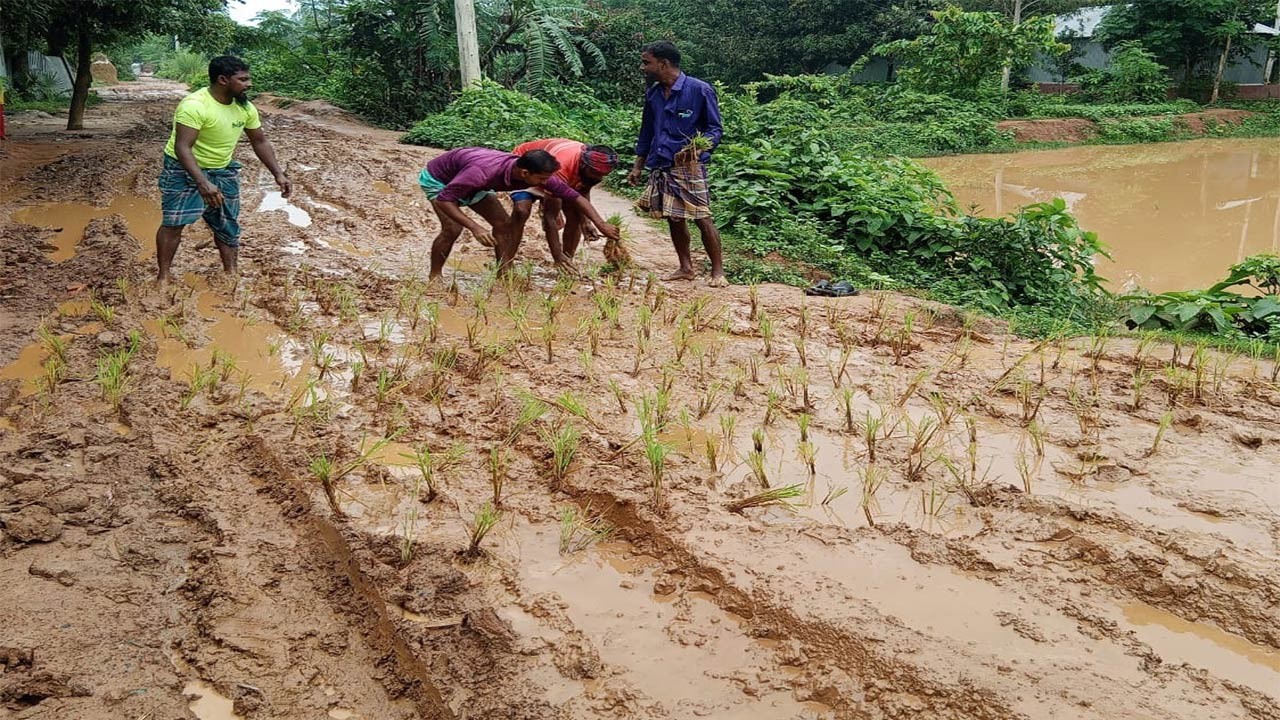 রায়গঞ্জ (সিরাজগঞ্জ) প্রতিনিধি : সিরাজগঞ্জের রায়গঞ্জে ধামাইনগর ইউনিয়নের পর্তাব দিঘী এলাকার আড়াই কিলোমিটার কাঁচা রাস্তায় সামান্য বৃষ্টিতে কাদায় পরিণত হওয়ায় ১০ গ্রামের জনসাধারণের চলাচলে চরমদুভোর্গ পোহাতে হচ্ছে। প্রতিবাদে স্থানীয়রা ওই রাস্তায় ধানের চারা রোপণ করছেন। ভুক্তভোগী গ্রামগুলো হলো-ধামাইনগর, পতাবদিঘী, দৌলতপুর, ফুলতালা, মির্জাপুর, বাটকামারি, হলদিবাড়ী, সোনাকান্দর, ধলজান ও জঙ্গলপাড়াসহ মোট ১০ গ্রাম।