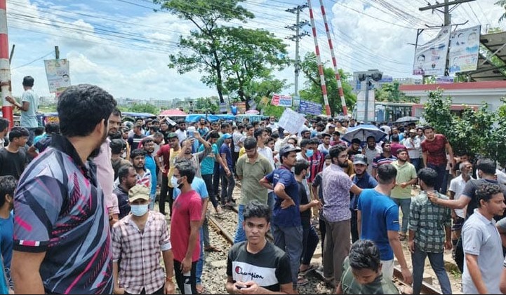 গাজীপুরে ট্রেন আটকে পলিটেকনিক শিক্ষার্থীদের বিক্ষোভ