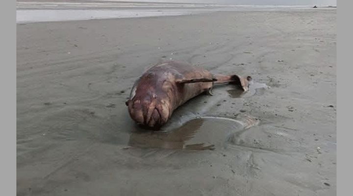 কুয়াকাটা সৈকতে ভেসে এল মৃত ইরাবতী ডলফিন