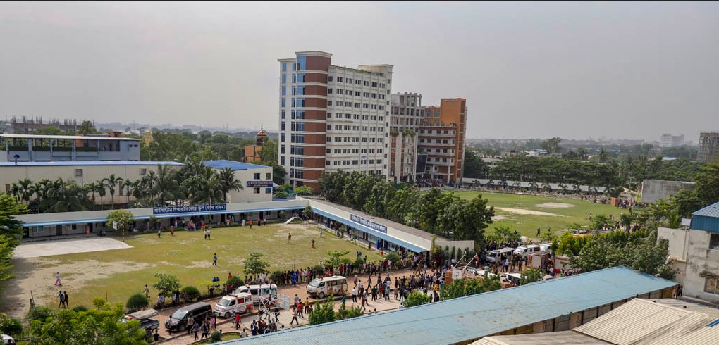আরও পড়ুনগত ২১ জুলাই দুপুরে বিমান বাহিনীর একটি প্রশিক্ষণ বিমান মাইলস্টোন স্কুল অ্যান্ড কলেজ ক্যাম্পাসের একটি ভবনের মুখে বিধ্বস্ত হয়। দেশের ইতিহাসে সবচেয়ে বড় এই বিমান দুর্ঘটনায় এ পর্যন্ত যে ৩৬ জনের মৃত্যু হয়েছে, তাদের বেশির ভাগই শিশু। দুর্ঘটনার পরদিন রাষ্ট্রীয়ভাবে শোক পালন করা হয়। বিমান দুর্ঘটনায় আহতদের মধ্যে ৫৬ জনকে জাতীয় বার্ন ও প্লাস্টিক সার্জারি ইনস্টিটিউটে নেওয়া হয়েছিল। তাদের মধ্যে ২০ জনের মৃত্যু হয়েছে। ছাড়পত্র পেয়েছেন ১৪ জন, ২২ জন এখনও হাসপাতালে ভর্তি আছেন।