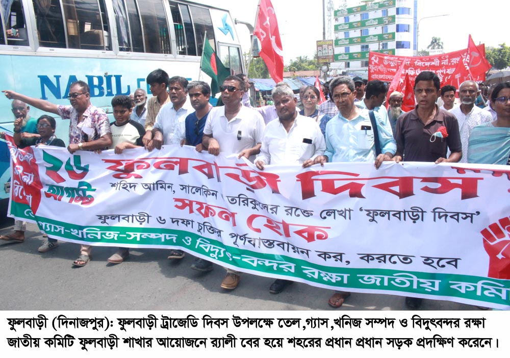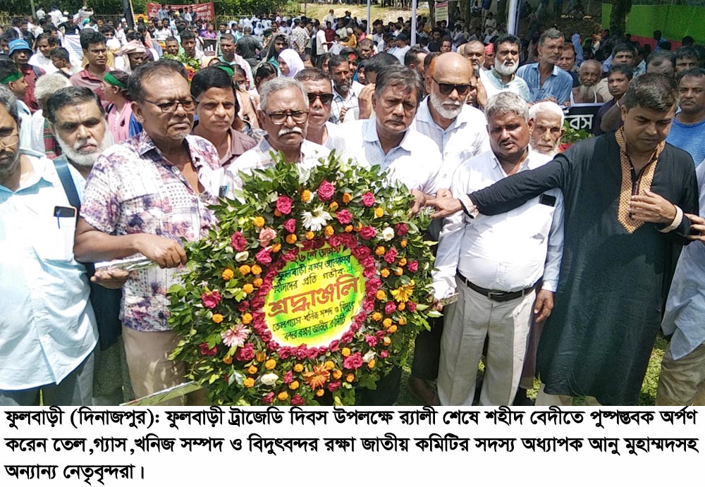 ফুলবাড়ী (দিনাজপুর) প্রতিনিধি : তেল-গ্যাস-খনিজ সম্পদ ও বিদ্যুৎ বন্দর রক্ষা জাতীয় কমিটির সদস্য অধ্যাপক আনু মুহাম্মদ বলেছেন, ২০০৬ সালের ২৬ আগস্ট ফুলবাড়ী রক্ষার আন্দোলন শুধু সম্পদ রক্ষার আন্দোলন ছিল না। এই আন্দোলন এই অঞ্চলের মানুষের জমি, তাদের বসতবাড়ি, কৃষি ও পানিসম্পদ, জীবন-জীবিকা ধ্বংস করে যে প্রকল্প হয়েছে সেগুলোকে রক্ষা করার জন্য আন্দোলন হয়েছে। এই আন্দোলন উন্নয়ন সম্পর্কে একটা নতুন দিশা দিয়েছে। যে সম্পদের ওপর মানুষ টিকে থাকে, তার প্রাণ প্রকৃতি ধ্বংস করে গৃহীত প্রকল্পকে উন্নয়ন বলা যাবে না। ফুলবাড়ীর মানুষ ২৬ আগস্টের আন্দোলনের মাধ্যমে তা বুঝিয়ে দিয়েছে।