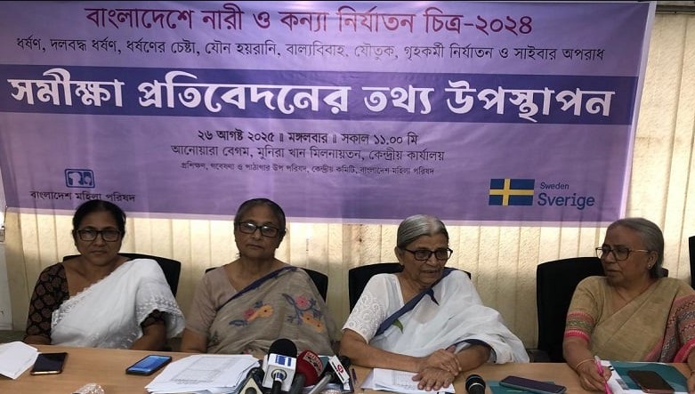 আজ মঙ্গলবার বাংলাদেশ মহিলা পরিষদ আয়োজিত ‘বাংলাদেশে নারী ও কন্যা নির্যাতন: ২০২৪ সমীক্ষা’ প্রতিবেদন প্রকাশ অনুষ্ঠানে এসব তথ্য জানানো হয়েছে। সংগঠনের কেন্দ্রীয় কার্যালয়ের আনোয়ারা বেগম মুনিরা খান মিলনায়তনে এ আয়োজন করা হয়।